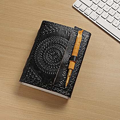 • AESTHETIC BEAUTY: The notebook is covered by a genuine leather cover in black that is beautifully embossed by intricate and artistic floral designs
