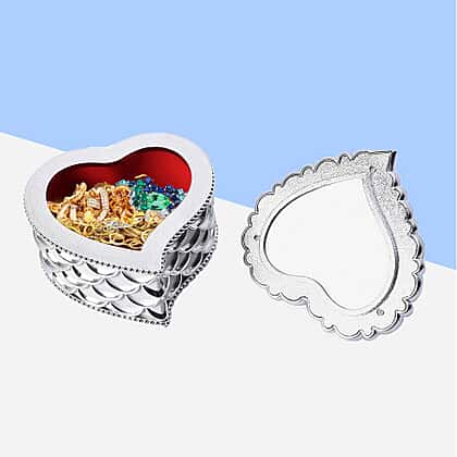 Heart Shape Rosette Texture Jewellery Storage Box with Velvet Scratch Protection and Top Lid Mirror (Size 13x13x10.5 Cm)