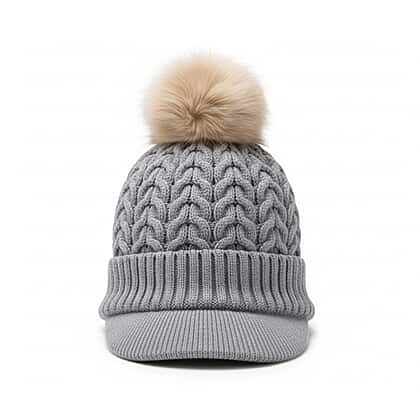 High Quality Fleeced Lined Cable Knit Pom Pom Hat - L.Grey