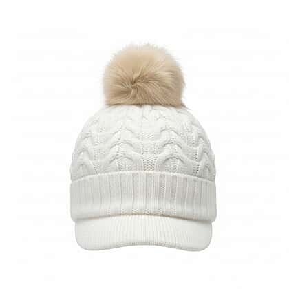 High Quality Fleeced Lined Cable Knit Pom Pom Hat - White