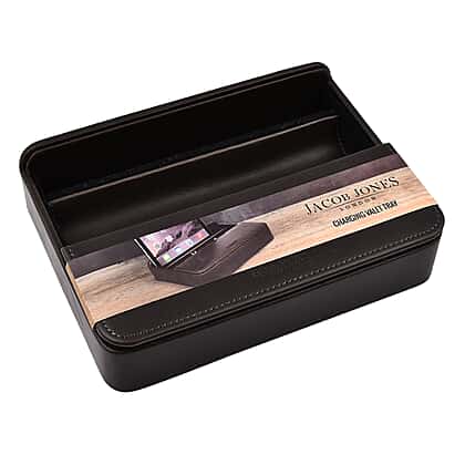 Looking for a way to stay organised and efficient while on the go? Look no further than the Jacob Jones mobile, iPad, stationary valet with storage, the ultimate accessory for anyone who wants to stay on top of their game. It also contains storage for small accessories such as cufflinks and change. This would make an ideal gift to help tidy the desk or bed. The high-quality materials used in its construction ensure its durability and longevity, making it a wise investment for anyone who wants to stay organised for years.