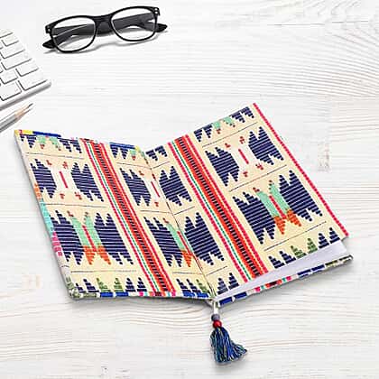 Jacquard Knitted Fabric Cover Diary with Matching Keychain and Bookmark - Beige and Multi Colour