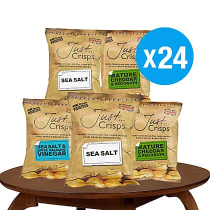 Just Crisps 24 x 40g Classic Pack - 8xSea Salt, 8xCheese & Onion, 8xSalt & Vinegar