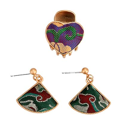 La Marey Signature Mulberry Silk Multicolour Hairpins & Push Back Earring Set