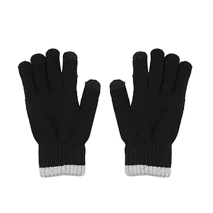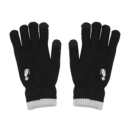 Ladies Warm Gloves with Embroided Cat (One Size) - Black and White