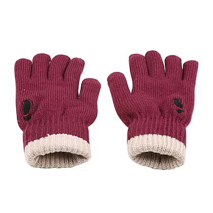 Ladies Warm Gloves with Embroidered Cat (One Size) - Red