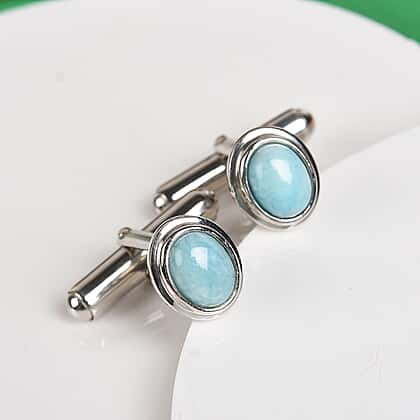 - Cufflinks are ornated with two oval-cut Larimar stones of 3.000 ct.