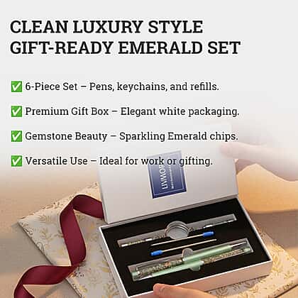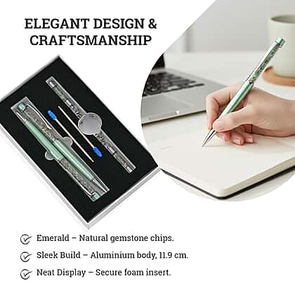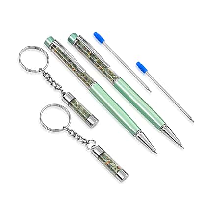 Livemore Emerald Gemstone Pen Set with 2 Keychains & 2 Refills - Green