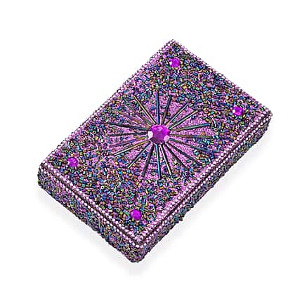 LIVMORE Elegant 7-Piece Beaded Stationery Set - 1 Beaded Box, 1 Diary, 5 Beaded Pens - Purple