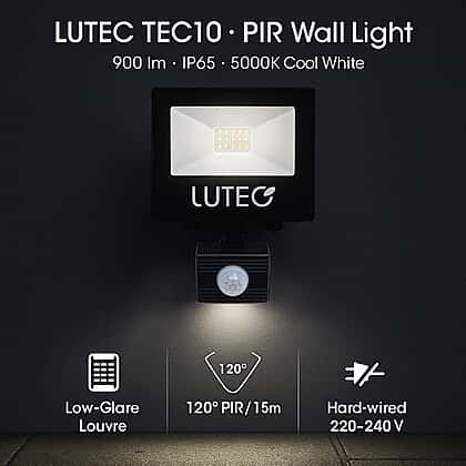 Lutec Tec10 Pir Hard Wired Low Glare Louvre Wall Light Integrated LED IP65 - 900 LUMEN