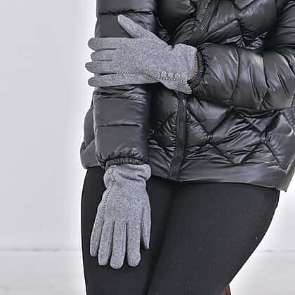 Luxury Cashmere Wool Gloves With Button Detailing and Fleece Lining - Grey