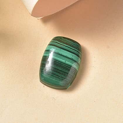 This malachite gemstone features a striking cushion cut that accentuates its natural swirling green patterns. Weighing an impressive 17.99 carats, it is a substantial piece for crafting show-stopping jewellery. The A-grade gem’s rich banded hues and clarity make it a standout choice. Cushion cuts are renowned for their soft edges and timeless appeal, perfect for pendants or cocktail rings. Malachite’s durability ensures it’s suitable for jewellery that lasts.