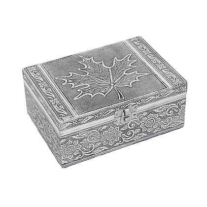 Maple Leaf Embossed Jewellery Storage Box with Blue Velvet Lining and Mirror Inside in Size 17.7x12.7 Cm