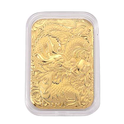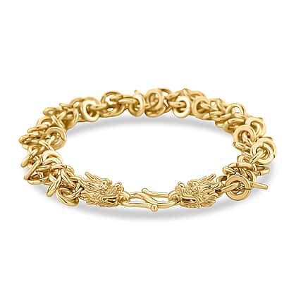 MEGA BUNDLE - 24K Gold (99.9% Purity) Embossed Dragon Collectible, Designer Closeout Dragon Head Bracelet (Size 8) Peach Fresh Water Pearl Earrings With Push Backs