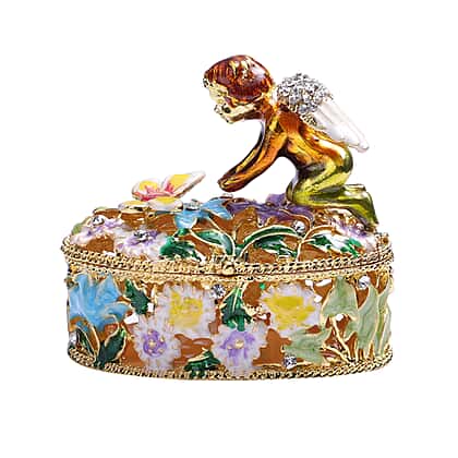 Multi Austrian Crystal Studded Angel Theme Trinket Box