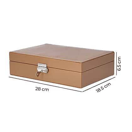 - DIMENSIONS: The dimensions of this jewellery box in taupe colour are 28x18.5x6.5cm
