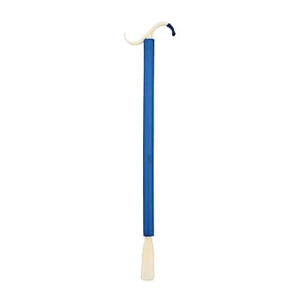 This long multifunctional stick is a useful 2-in-1 tool for putting on shoes and getting dressed. The stick features a flexible push and pulls action that comes with an S-shaped hook with a non-slip cap, giving you more control when handling apparel. You don't have to bend down to take off or put on your shoes with the dressing aid. You may use this dressing stick with a hook for everything from picking up items off the floor to pulling any things from the drawer. This stick is available in white and blue and is lightweight.