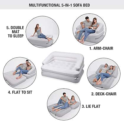 - VERSATILE ACCESSORY: This amazing product is highly versatile, the 5 in 1 sofa bed features an electric pump and can be used as a sofa, air bed, lounger, recliner or kids high-rise bed