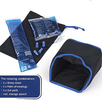 Unwind and enjoy a restful night's sleep with the Mysleepmask Blackout Sleep Mask, designed to block out light and create a peaceful sleeping environment. Made from soft, organic cotton, this wraparound mask gently envelops your head, ensuring a snug and comfortable fit without irritation. The retractable nose pads and padded ear cups keep the included earplugs secure, reducing external noise. Plus, the versatile gel inserts can be heated or cooled, adding an extra relaxation layer whether at home or on the go. It even comes with a travel case, making it perfect for trips.