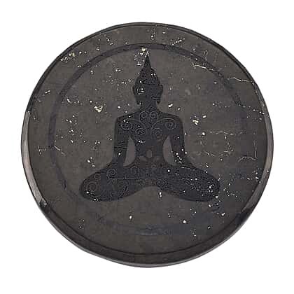 Natural Shungite Buddha Embossed Round Tile 910.00 Ct.