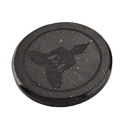 The round shungite stone features Buddha in a meditative pose. This piece has an antique look owing to the natural speckles in the stone. This also helps to add a sense of natural touch to the design. This decorative piece can symbolise enlightenment or inner peace. It can motivate the owner to practice mindfulness and seek calmness and clarity in life. This black figurine can be placed in the mediation room or alongside your indoor plants to alter your space.