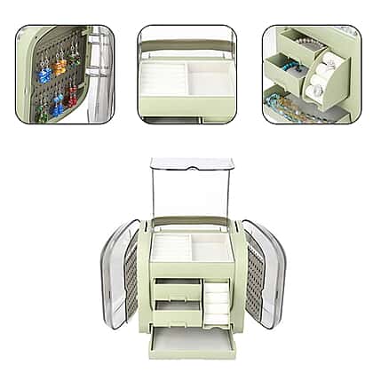 Olive Green Colour Innovative Jewellery Box with 2 side Doors and Removable Top