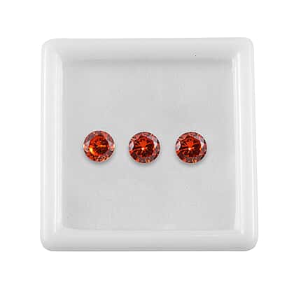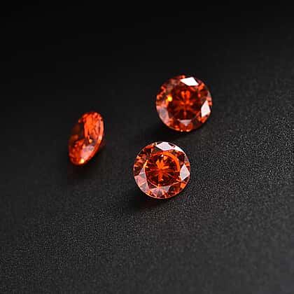 Set of 3 Orange Cubic Zirconia Loose Gemstones in Round Shape 4 Ct. (6 mm)