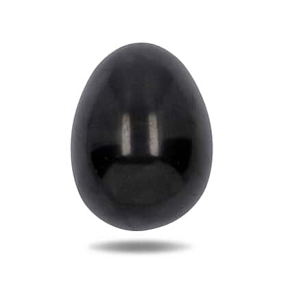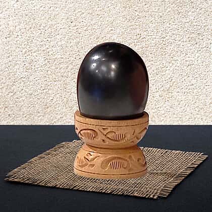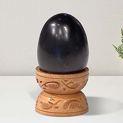Oval Shape Shungite with Wooden Stand (Size 6x4.2x4.1 Cm) 660.00 Ct