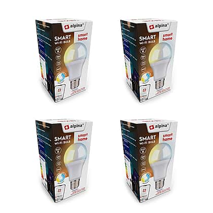 Pack of 4 - Alpina RGB Smart Wi-Fi Bulb E27 9W - White