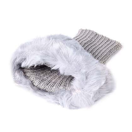Pair of Crochet Faux Fur Knit Boot Toppers (Size 17x15Cm) - Light Grey