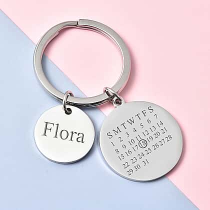 Make someone close to you feel your care and affection by gifting them this Personalised Calendar Key chain in Silver Tone. The bigger disc charm carries the 31 dates of a month and can be highlighted with up to 2 characters while the smaller disc charm can be engraved with up to 12 characters. The split ring hook makes your keys secure in an effortless manner.