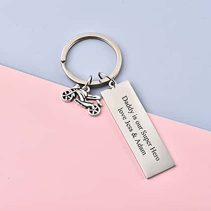 Personalised Engravable Motorbike and Plate Key Ring in Silver-Tone