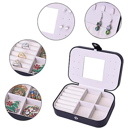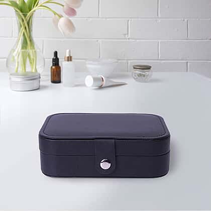 Portable and Lightweight Jewellery Organiser with Button Closure and Inside Mirror in Black Colour (Size 16.5x11.5x5.5 cm)