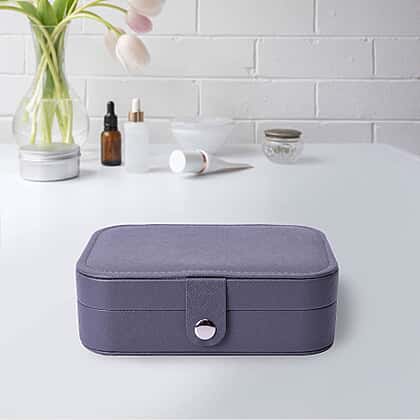 Portable and Lightweight Jewellery Organiser with Button Closure and Inside Mirror in Grey Colour (Size 16.5x11.5x5.5 cm)