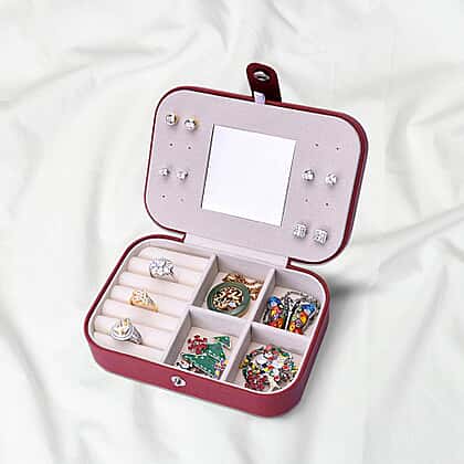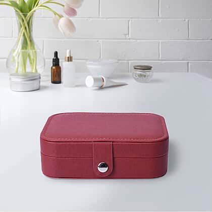Portable and Lightweight Jewellery Organiser with Button Closure and Inside Mirror in Maroon Colour (Size 16.5x11.5x5.5 cm)