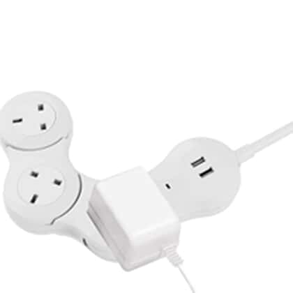 Quirky Pivot Power Strip with 3 x 3 Pin Plug Sockets and 2 USB Sockets
