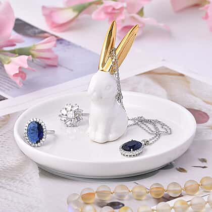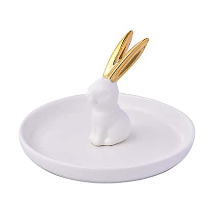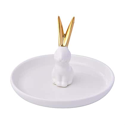 Rabbit Jewellery Organiser (Size 13x13x8 cm) - White Body & Gold Ear