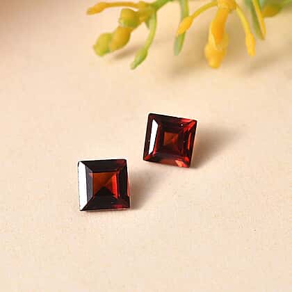 Set of 2 A Red Garnet Loose Gemstones in Square Shape (6mm) 2.33 ct.