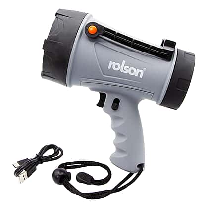 The Rolson rechargeable spot light 10W is a powerful and portable lighting solution, perfect for outdoor adventures, emergencies, and worksite use. Featuring a comfortable pistol grip with a built-in carry handle, this spotlight delivers up to 1000 lumens of bright, focused light. The rechargeable 2200mAh Li-Ion battery ensures up to 2 hours of runtime and recharges via the Type C USB port (cable included). Designed with IP65 water resistance, it is durable against moisture and dust. With multiple lighting modes, including an SOS flashing function, this lightweight spotlight is a reliable tool for any situation.