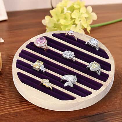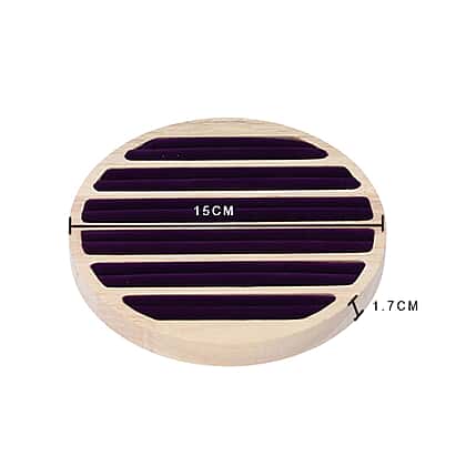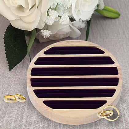 Round Bamboo Ring Tray with 6 Purple Velvet Slots