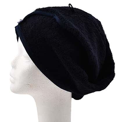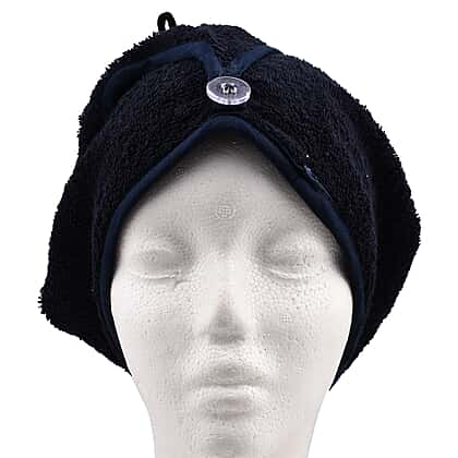 Set of 2 - 100% Cotton Absorbent Fast Dry Hair Wrap (Size 24x9 cm) - Navy & White