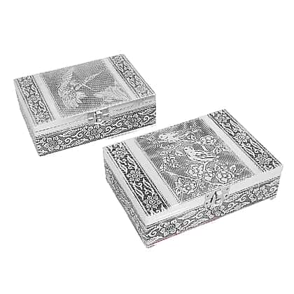 Set of 2 Humming Bird Embossed Jewellery Storage Box with Red Velvet Lining in Size 17.7x12.7x5.08 Cm