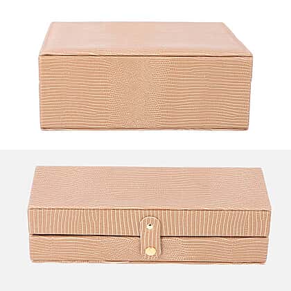 Set of 2 - Multi Purpose Two-Tier Lizard Skin Pattern Jewellery Box in Brown Colour
