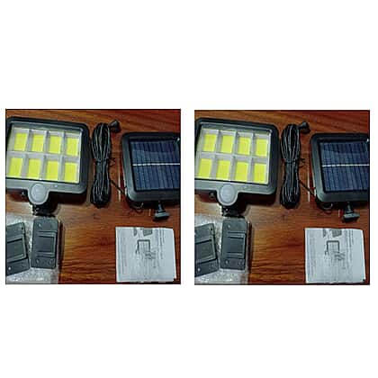 Set of 2 - Security Solar Light With Panel And Remote Control - Black