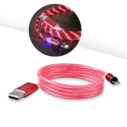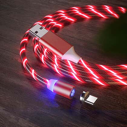 Set of 2 - USB Cable with 3 Magnetic Tips (Charger, Type-C and Micro USB) and Flowing LED Lights - Red