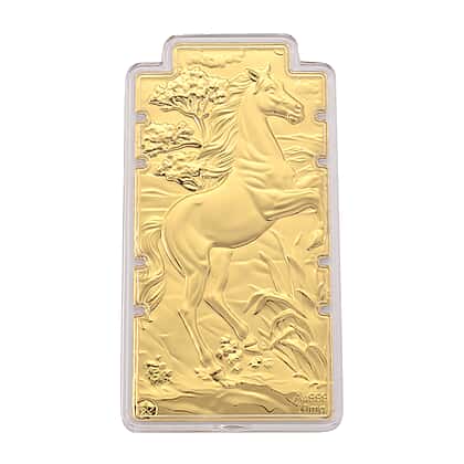 Set of 2 - 24K Yellow Gold (99.99% Purity) Embossed Maneki Neko Cat & Horse Pattern Collectables