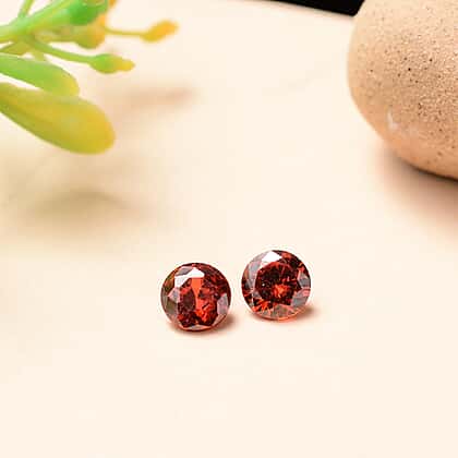 Set Of 2 Garnet Cubic Zirconia Round 5 mm Gemstone, 1.64 Ct