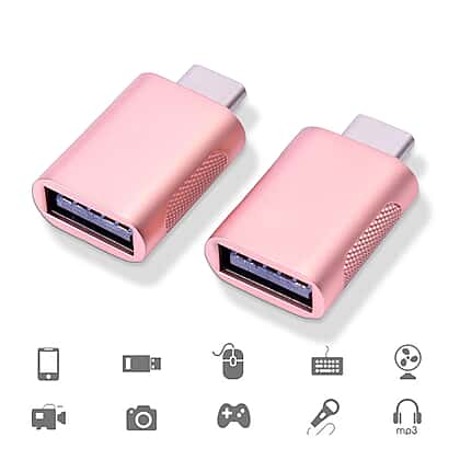 Set of 2 Type-C USB Converter Adapter in Rose Gold Colour