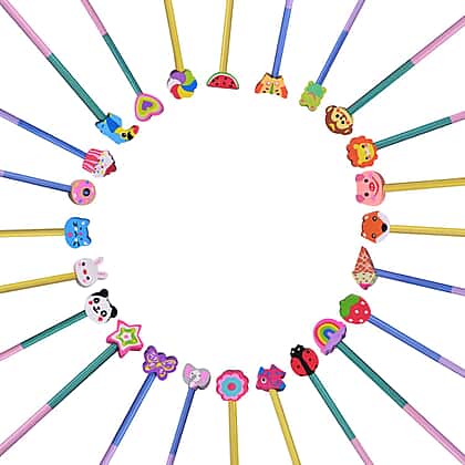 Set of 24 Colourful Pencils with Cartoon Erasers- Multi