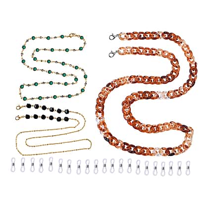 Set of 3 - Glasses Chain in Different Styles Each with 20 Pcs Rubber (Length-70cm) - Brown,Black & Green